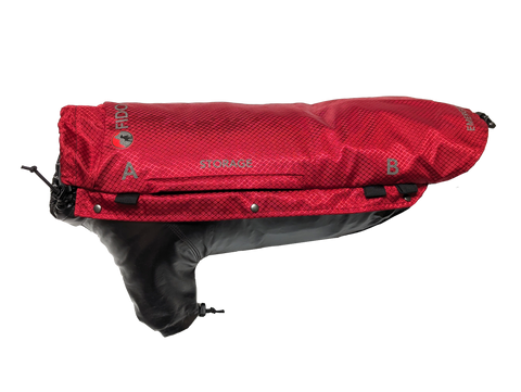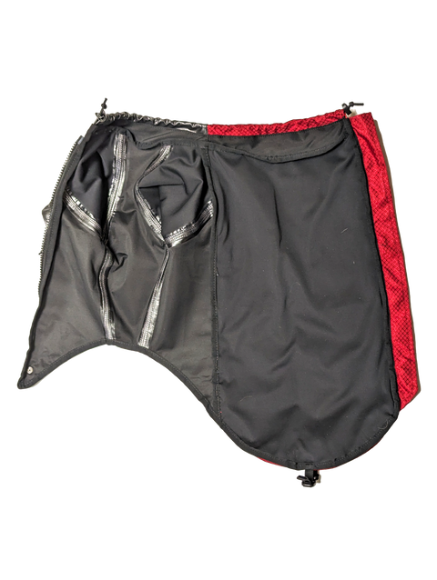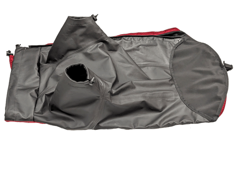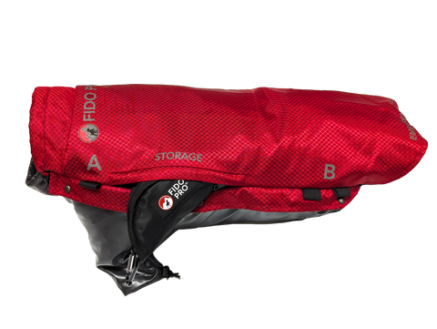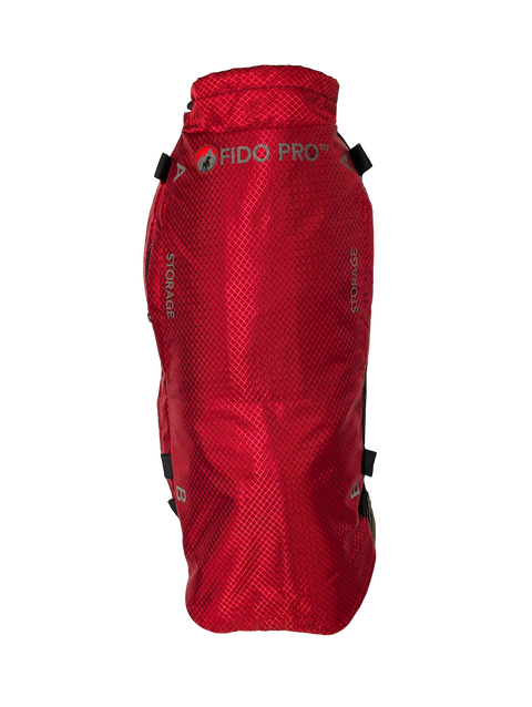 Finally a dog jacket that is built with fabrics, materials and design features specifically for the dog and not to market to their human companions. The Fido Fortress is your k-9 companion's protective fortress against harsh winter and wet conditions. Did you know that dogs don't sweat like humans? Therefore, any dog jacket using "breathable fabric" as a selling point is not making a product suitable for a dog in a harsh wet or winter environment. Or, they are using cheap fabrics that feel nice to the touch but fail very quickly when in harsh conditions. IF YOU WANT TO KEEP YOUR DOG PROTECTED IN HARSH CONDITIONS, KEEP THEM DRY AND PROTECTED FROM THE WIND. Other jackets can become liabilities rather than protective garments, once they become wet and the temperature drops as you move through the days changing weather and climate zones. That wet jacket can become an ice jacket!  The Fido Fortress uses fabrics that are WATERPROOF-WINDPROOF with fully taped seams that will keep your dog warm and dry. Three storage pockets so your dog can carry everything they need within their fortress, including a large storage pocket to stow their own Airlift Rescue Sling!