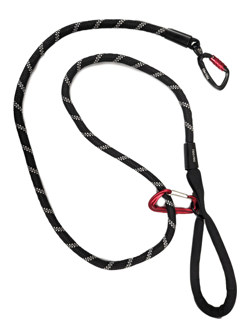 -Wired gate carabiner to assist in tethering the dog, or clip to your waste belt for a hands-   free experience