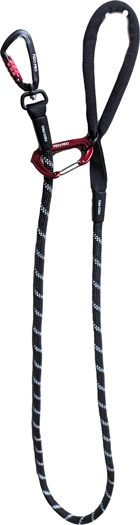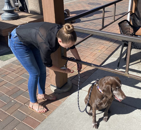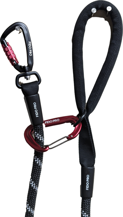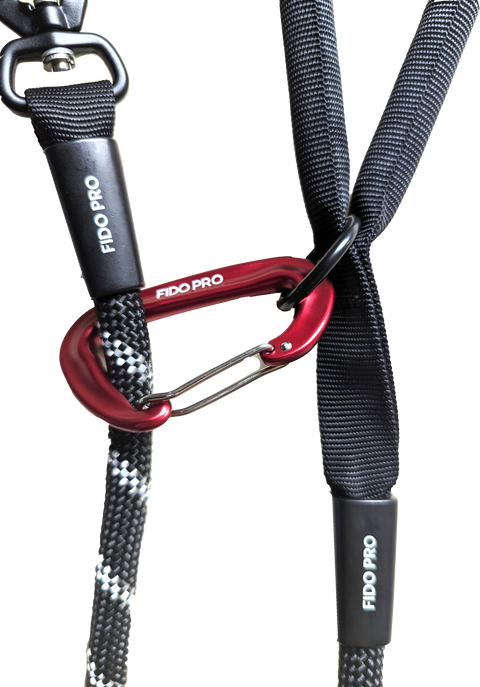 -Locking carabiner that attaches to the dog, to keep them from breaking free